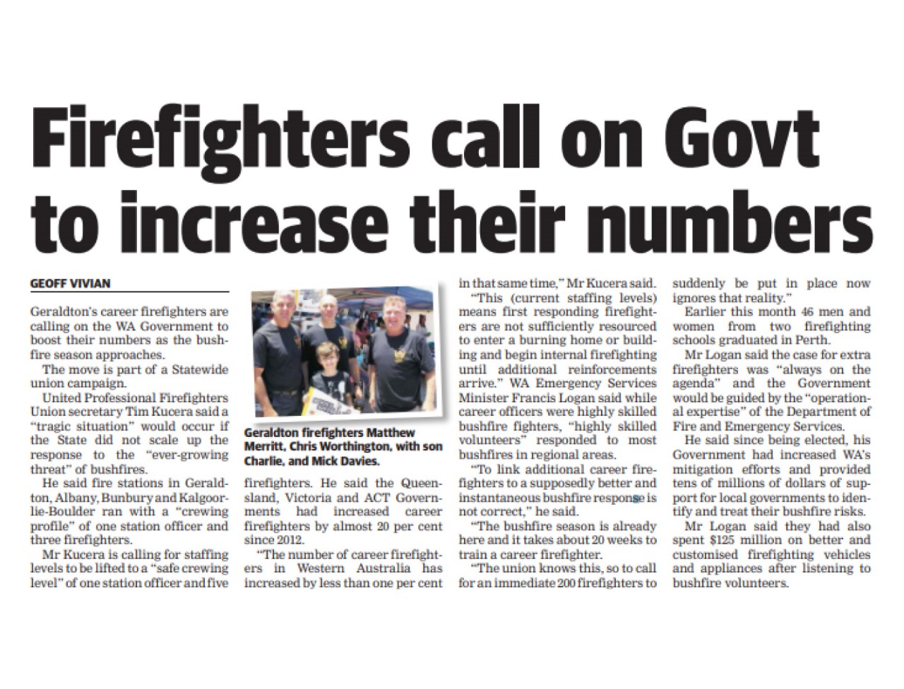 Specific to the campaign asks, the WA State Government announced 36 additional career officers to be permanently deployed in regional WA, $1.2 million towards the expansion and renovation of Kalgoorlie Fire Station and $4 million for new personal protective clothing for all WA firefighters.